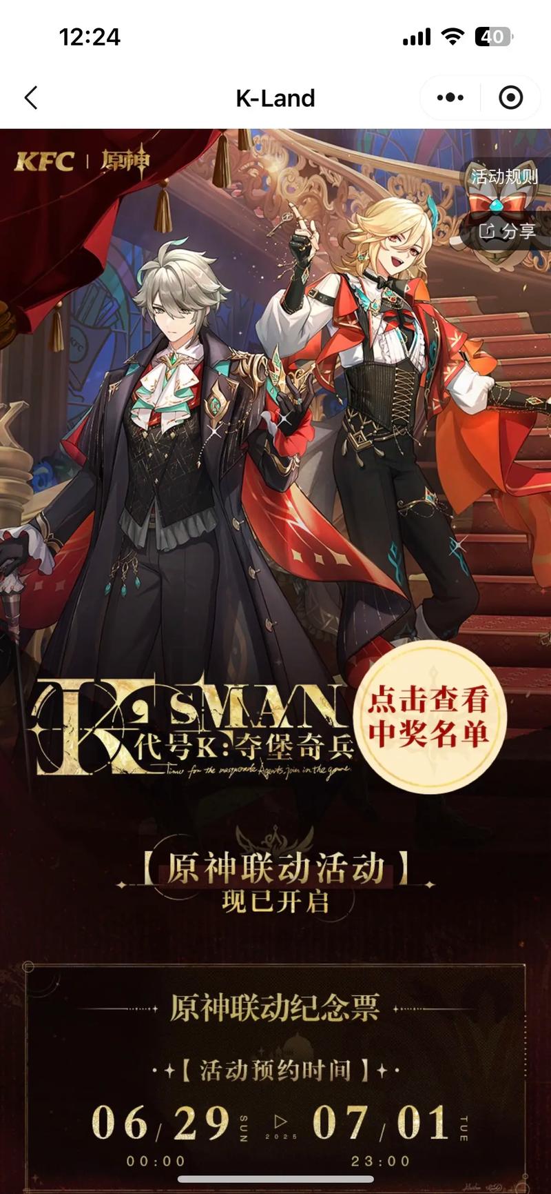 原神与肯德基联动时间?